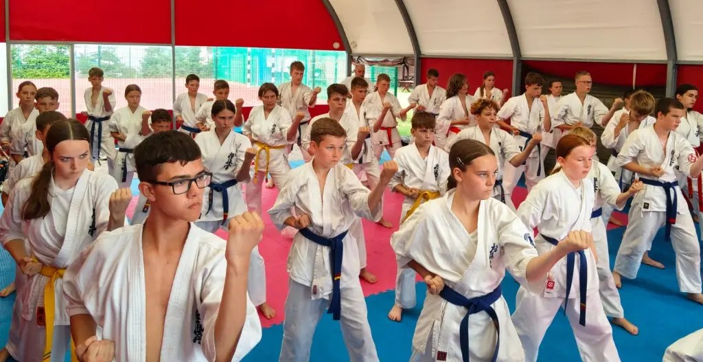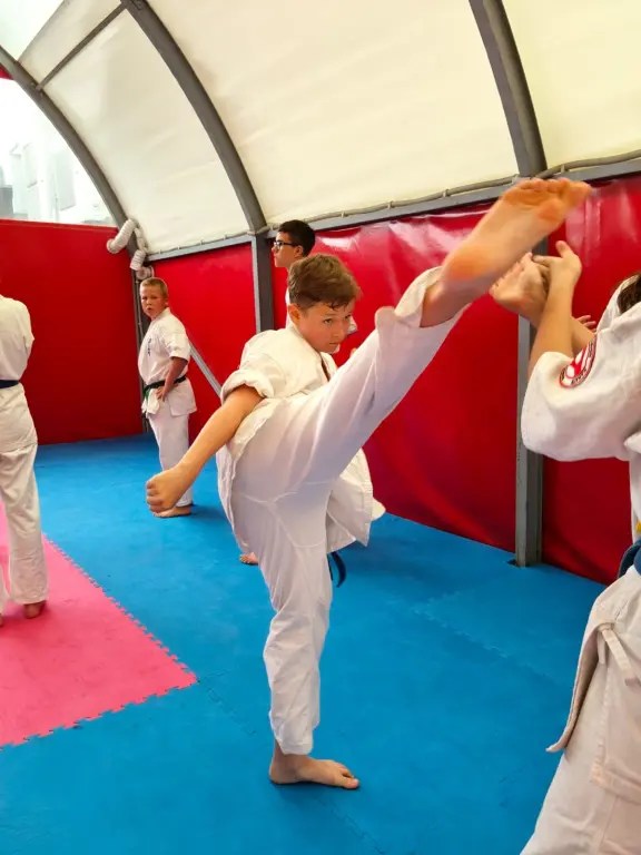 Osobnym wyzwaniem na obozie jest trening mocno – nocny, który wprowadza uczestników w zupełnie inny wymiar doświadczeń. Dokładnie o północy wszyscy zameldowali się w sali namiotowej, gdzie czekała na nich nie tylko atmosfera tajemniczości, ale też nutka oczekiwania na to, co przyniesie ta noc. Trening rozpoczął się od krótkiej rozgrzewki. Potem każdy instruktor przeliczył 100 razy wykonanie techniki. Dalej były zadania związane z poruszaniem, kata oraz ćwiczenia sprawnościowe i wymagające współpracy. Całość zakończyła się medytacją przy muzyce, która wprowadziła wszystkich w stan głębokiego relaksu. Tak wyciszeni karatecy spokojnie wrócili do pokojów na nocny wypoczynek.