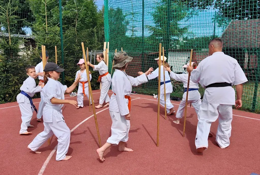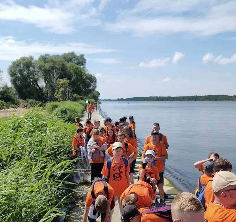Sztutowo położone jest blisko morza a ściślej nad Zatoką Gdańską i nad Wisłą Królewiecką. Plażowanie było zaplanowaną częścią obozu, ale z powodu aury nie do końca się udało. Chociaż najstarsi uczestnicy zapamiętają poranne biegi na plażę z sensei Romanem, które dodamy były dobrowolne ☝️🤓.
