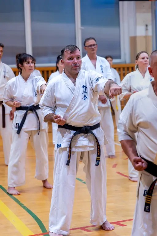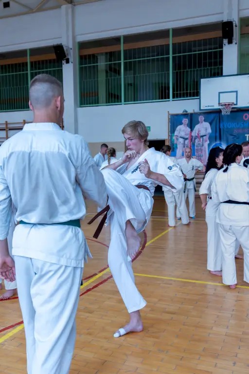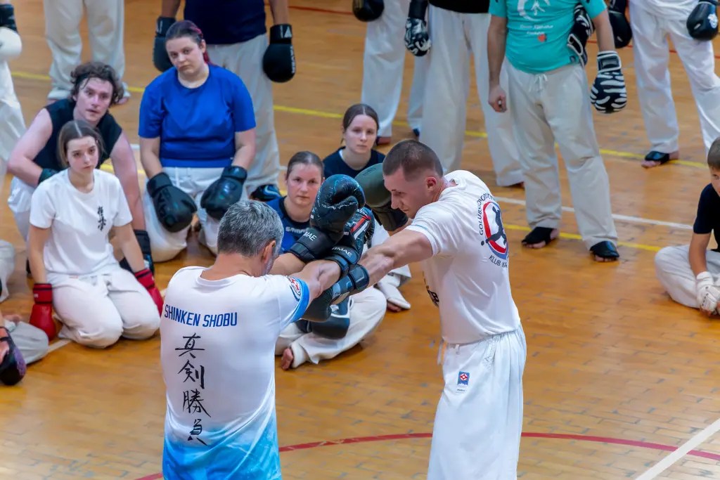 Shihan Artur Wilento 6 dan pokazał sposób ćwiczenia kopnięć w poruszaniu się, zwracając uwagę na ich płynność i precyzję. Prowadził trening shinken shobu, w którym uczestnicy mieli okazję doskonalić swoje umiejętności w warunkach zbliżonych do rzeczywistych. Dodatkowo, ćwiczenia na małych tarczach – packach, były propozycją ćwiczeń, pomagającą w uzyskaniu dynamicznych i precyzyjnych kopnięć. W trakcie treningu podkreślał znaczenie odpowiedniej postawy ciała oraz synchronizacji ruchów, co przyczyniło się do jeszcze lepszego zrozumienia techniki.