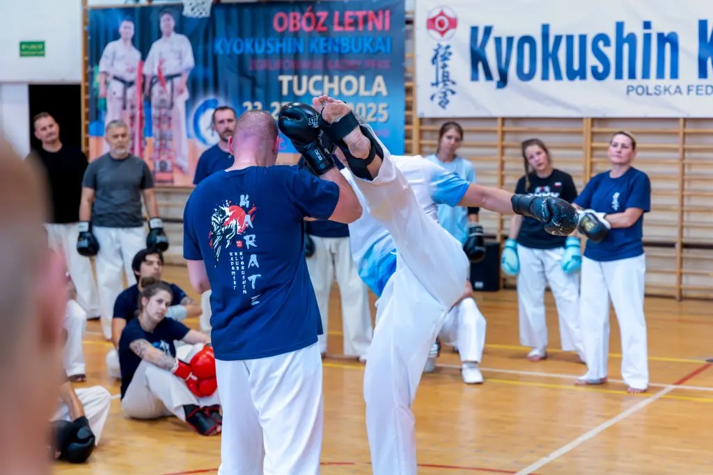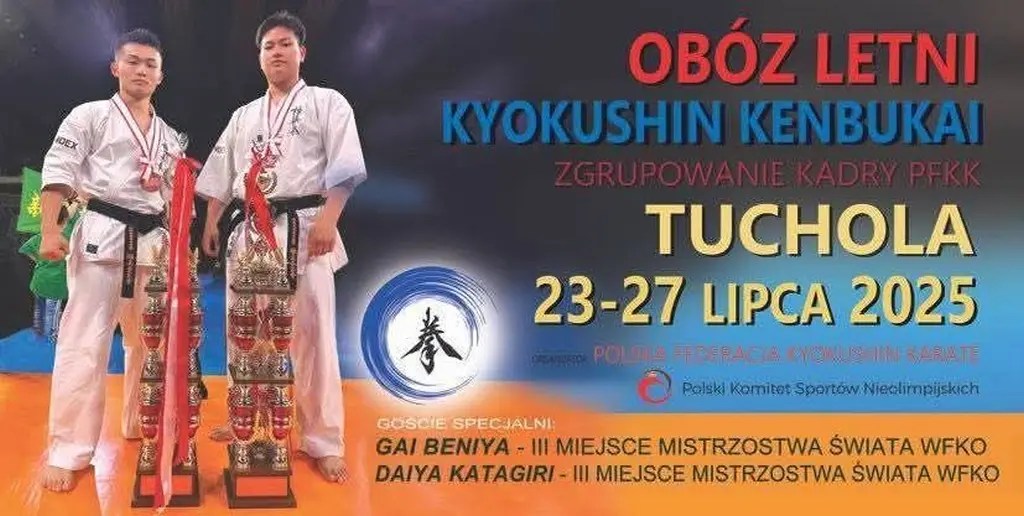 Również w tym roku odbył się Obóz Letni Polskiej Federacji Kyokushin Karate w Tucholi, który przyciągnął wielu pasjonatów sztuk walki z całej Polski. To już po raz XXIII w dniach 23-27.07.2025 spotkaliśmy się, by wspólnie trenować i poznawać sztuki walki. Obóz nie tylko służył jako platforma treningowa, ale także jako doskonała okazja do zawiązywania nowych przyjaźni oraz integracji środowiska karate. W ramach obozu odbywał się również Kurs Instruktora Sportu Karate zorganizowany wspólnie przez TKKF w Toruniu i PFKK. W tym roku gośćmi specjalnymi byli japońscy zawodnicy Kenbukai Gai Beniya i Daiya Katagiri, którzy w tym roku zdobyli III miejsca w Mistrzostwach Świata WFKO w Japonii.