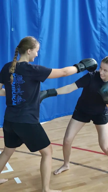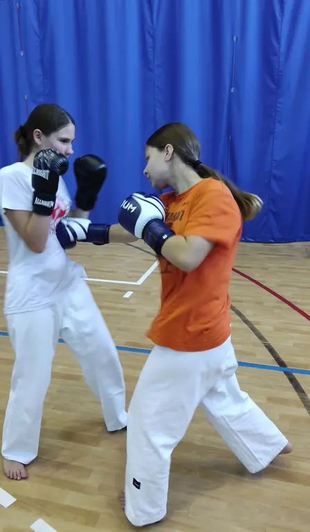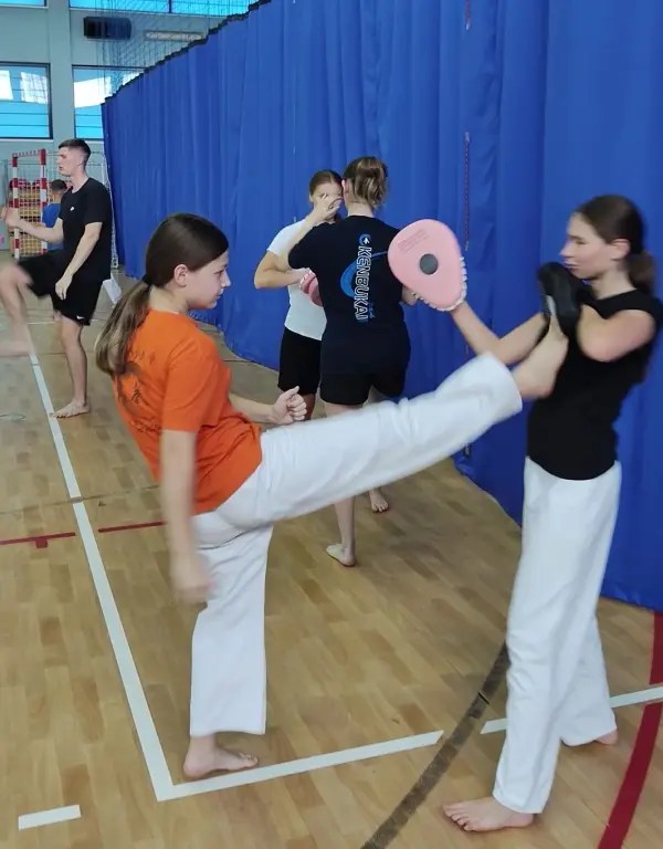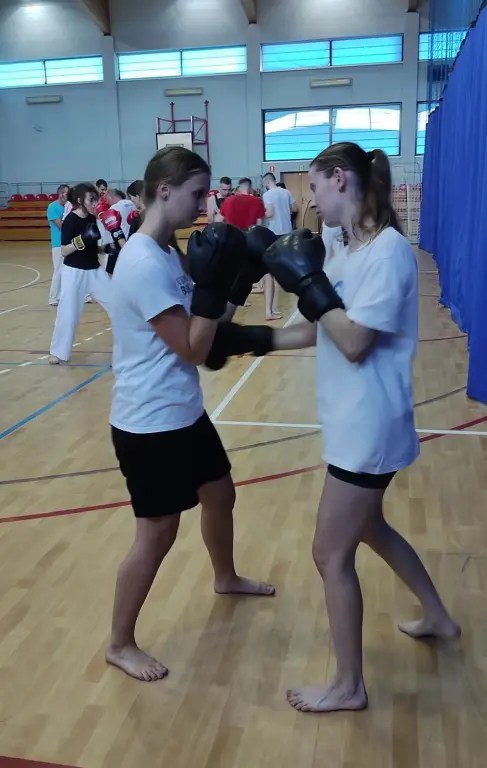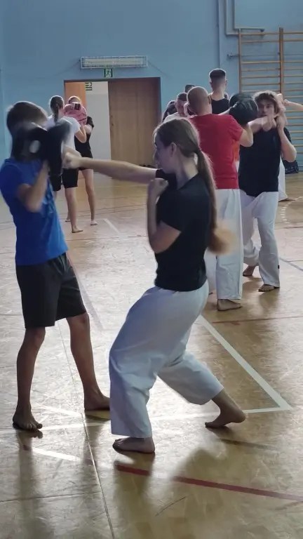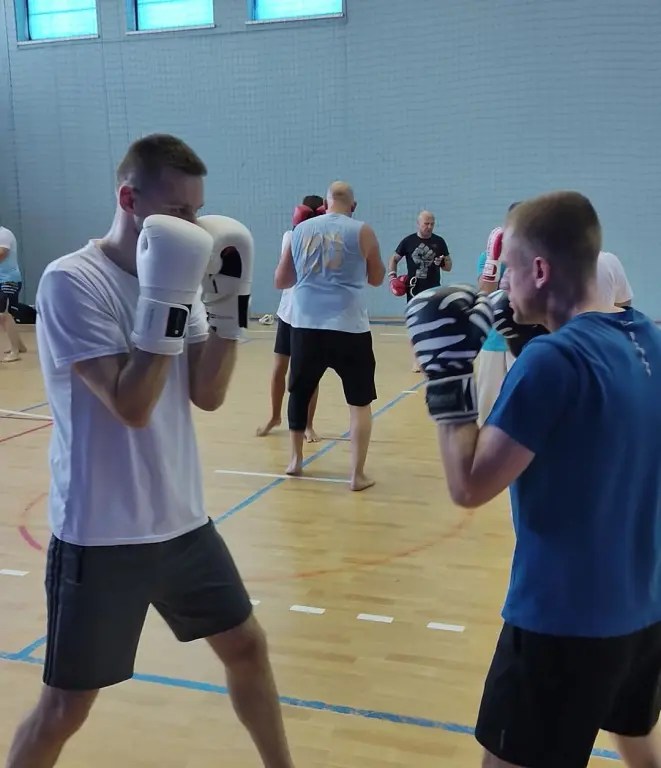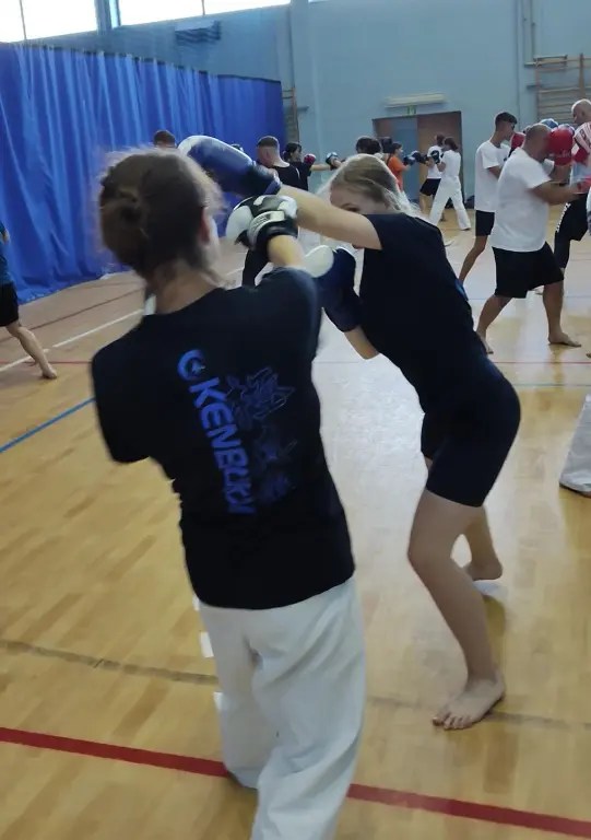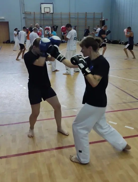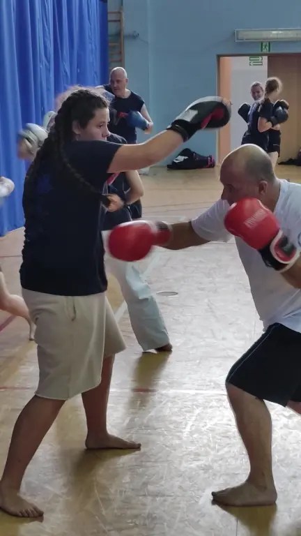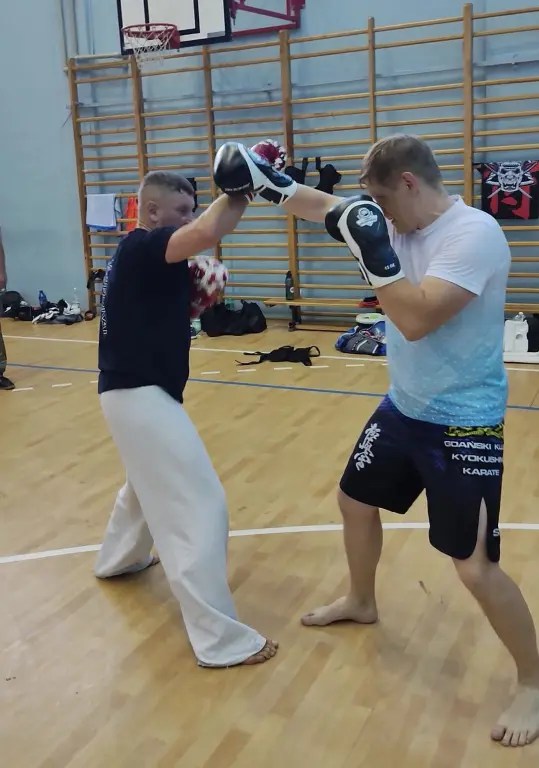 Instruktorzy korzystali ze sprzętu pomagającego bezpiecznie trenować i kształtować technikę i motorykę, co zdecydowanie podniosło jakość zajęć. Ciekawą propozycją okazały się ćwiczenia z piłeczkami tenisowymi zaproponowanymi przez sensei Sławomira Kłosińskiego, które znakomicie przekładały się na późniejsze ćwiczenia bokserskie, rozwijając szybkość reakcji oraz precyzję ruchów. W trakcie tych zajęć uczestnicy mogli poprawić swoje umiejętności w kontrolowany sposób, co znacząco wpłynęło na ich pewność siebie.