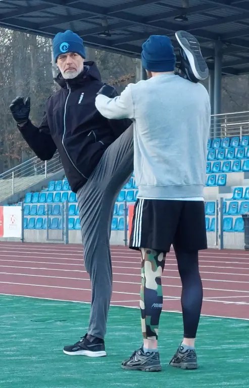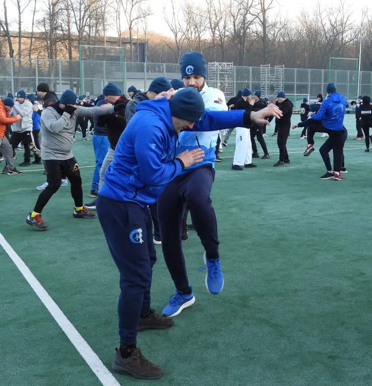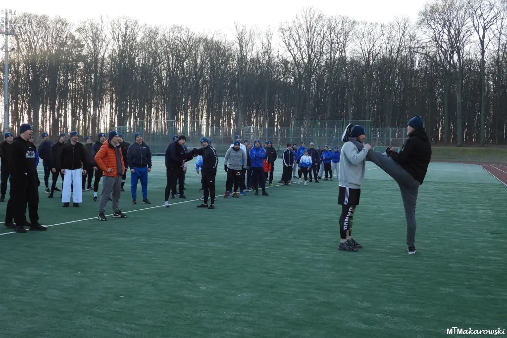 Każdy dzień treningowy rozpoczynaliśmy od rześkiego rozruchu na boisku, który prowadził shihan Artur Wilento 6 dan. Znakomicie po nim smakowało śniadanie 🙂