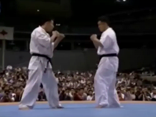 However, I found this karate dojo to be very disappointing. Normally, middle school students are supposed to be directed into the section where they specialized in training young boys, but I lied about my age and joined the general group. It was set in my heart that I wanted to become stronger as soon as I can. The small dojo was packed full of newly enlisted people possibly due to the karate boom that happened at the time. On the very first day of practice the instructor asked if anyone wanted to participate in kumite (sparring) and I raised my hands willingly, but as a result I was viewed as a cheeky figure. The instructor told all of the beginners to sit facing the wall so that we didn’t know that we would be going against brown and black belt students. I was punched and kicked till I fell unconscious over and over again. Each time I hear the echo of a cold voice “Stand up. You wanted to spar right?” I was forced to stand up only to get punched again. I was punched fiercely right in the abdominal area, and I felt increasingly nauseous. Now that I think about it, I believe the instructor wanted to lessen the overwhelming amount of people in the dojo by warning all of the newcomers.
