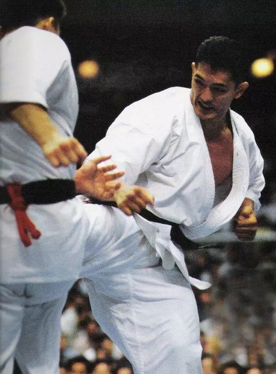 The amount of power he puts into the low roundhouse kick is no doubt the strongest in kyokushin karate. The conventional low roundhouse kick is as if you are vigorously swinging around an iron pipe, hoping that one hit will do a considerable amount of damage. His low roundhouse kick on the other hand is distinguishable from the conventional low roundhouse kick in that it is accurate and has an incredible amount of destructive power. A similar analogy would be carpet bombing and pinpoint attacks. In addition, his 180cm tall, 97kg body weight is built with muscle made by rocks which makes him strong against hits.