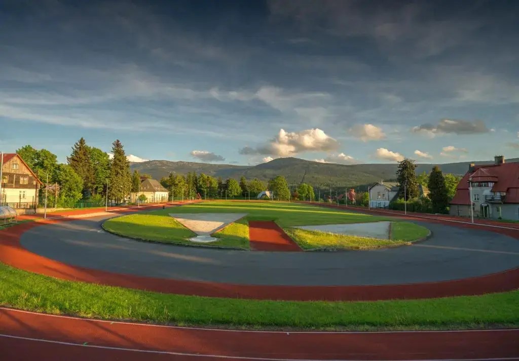 Legendarny Ośrodek Treningowy SPORT Szklarska Poręba. Jeden z najwyżej położonych stadionów lekkoatletyczny w Polsce 700 m n.p.m. Tartanowa bieżnia, z której rozciąga się niezapomniany widok na Karkonosze. Szczególnie ceniony przez wszystkich tych, którzy budują swoją kondycję i wytrzymałość. Wszystkie obiekty i urządzenia sportowe na miejscu. Pokoje kilkuosobowe, TV, bezprzewodowy Internet Wi-Fi. Wyżywienie na miejscu, poidło (własne ujęcie wody), kostkarka lodu, sauna, otoczenie pełne zieleni.