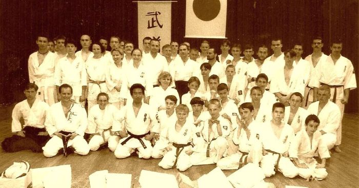 W dniu 15.05.1997 mieliśmy okazję uczestniczyć w wyjątkowym pokazie w Auli UMK, który był częścią cyklu Dni Kultury Japońskiej w Toruniu. To wydarzenie zgromadziło również ćwiczących aikido i karate shotokan, co dodatkowo wzbogaciło pokaz. Szczególnie cieszyliśmy się z obecności Teruo Miyazaki 2dan z Japonii, który przyjechał do Torunia na zaproszenie organizatora. Wspólnie z nim mogliśmy zaprezentować nasze umiejętności. Jego szczególnym pokazem było teamashiwarii. Aktualnie, przebywa w Warszawie, gdzie dzieli się swoją wiedzą, prowadząc zajęcia w Bielańskim Klubie Kyokushin Karate. My również oprócz techniki kyokushin karate pokazaliśmy jak rozbijać można dachówki 🙂