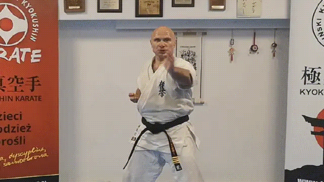 Na tym treningu proponuję ćwiczenia technik jednych z podstawowych uderzeń i bloków. Techniki uderzeń i bloków wykonywać będziemy w pozycji przenosząc ciężar ciała i środek ciężkości z nogi na nogę. Przy okazji możemy wzmocnić w ten sposób mięśnie nóg. Wszystkie ćwiczenia wykonujemy w miejscu.