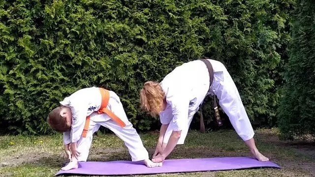Na tym treningu będziemy kontynuować ćwiczenie techniki z uwzględnieniem przenoszenia ciężaru ciała i środka ciężkości w pozycji zenkutsu-dachi i tei-kokutsu-dachi. Pamiętajcie o stabilnej pozycji, prostej sylwetce i wykonaniu zadań symetrycznie na dwie strony z taką samą ilością powtórzeń.